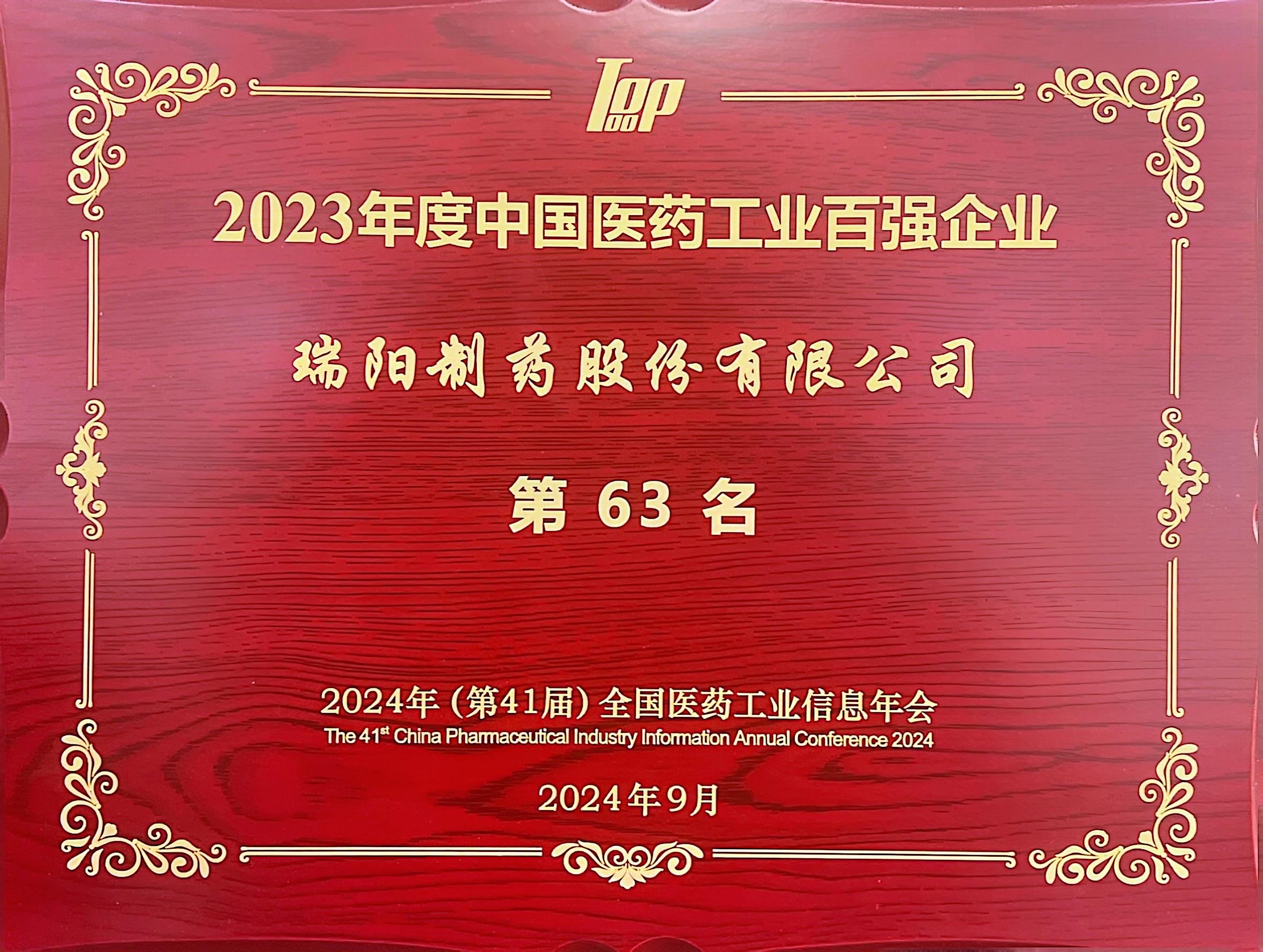 ? ? 近日,公司在最新發(fā)布的2023年中國(guó)醫(yī)藥工業(yè)百?gòu)?qiáng)榜中位列第63名,并被中國(guó)醫(yī)藥工業(yè)信息中心授予“2024年中國(guó)醫(yī)藥研發(fā)產(chǎn)品線最佳工業(yè)企業(yè)”稱號(hào)。